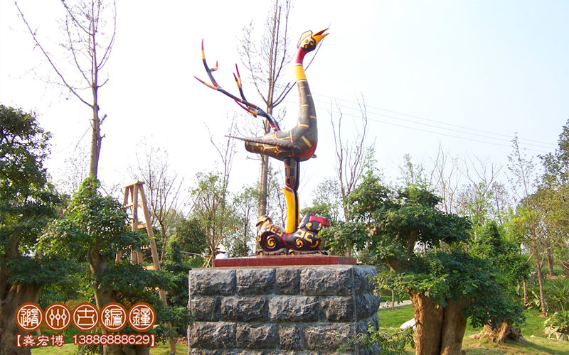 隨州古編鐘真實(shí)產(chǎn)品照片——虎座立鳳—青銅彩繪園藝雕塑