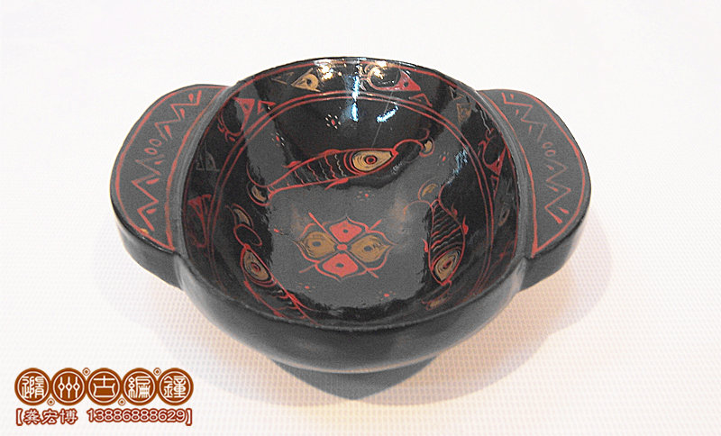 彩繪鳥云紋耳杯做得輕便靈巧,黑紅兩色對(duì)比明顯,云紋流動(dòng),龍飛鳳舞其中。古人飲宴,必伴以音樂鼓瑟,方能賓主盡興。古人禮儀,以雙手執(zhí)耳杯飲酒,不似今人單手執(zhí)杯。